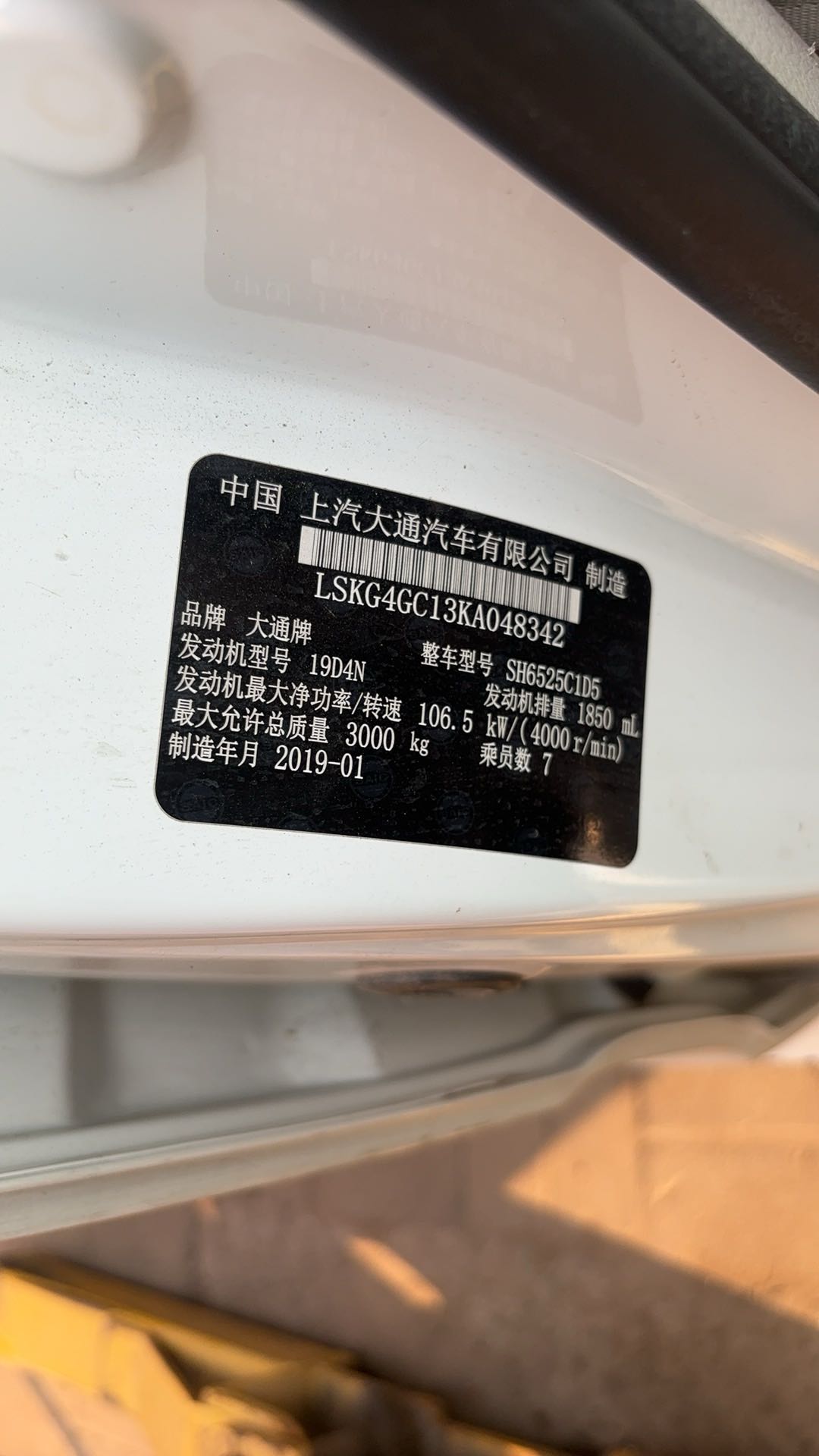 2019款 上汽大通MAXUS V80 发动机