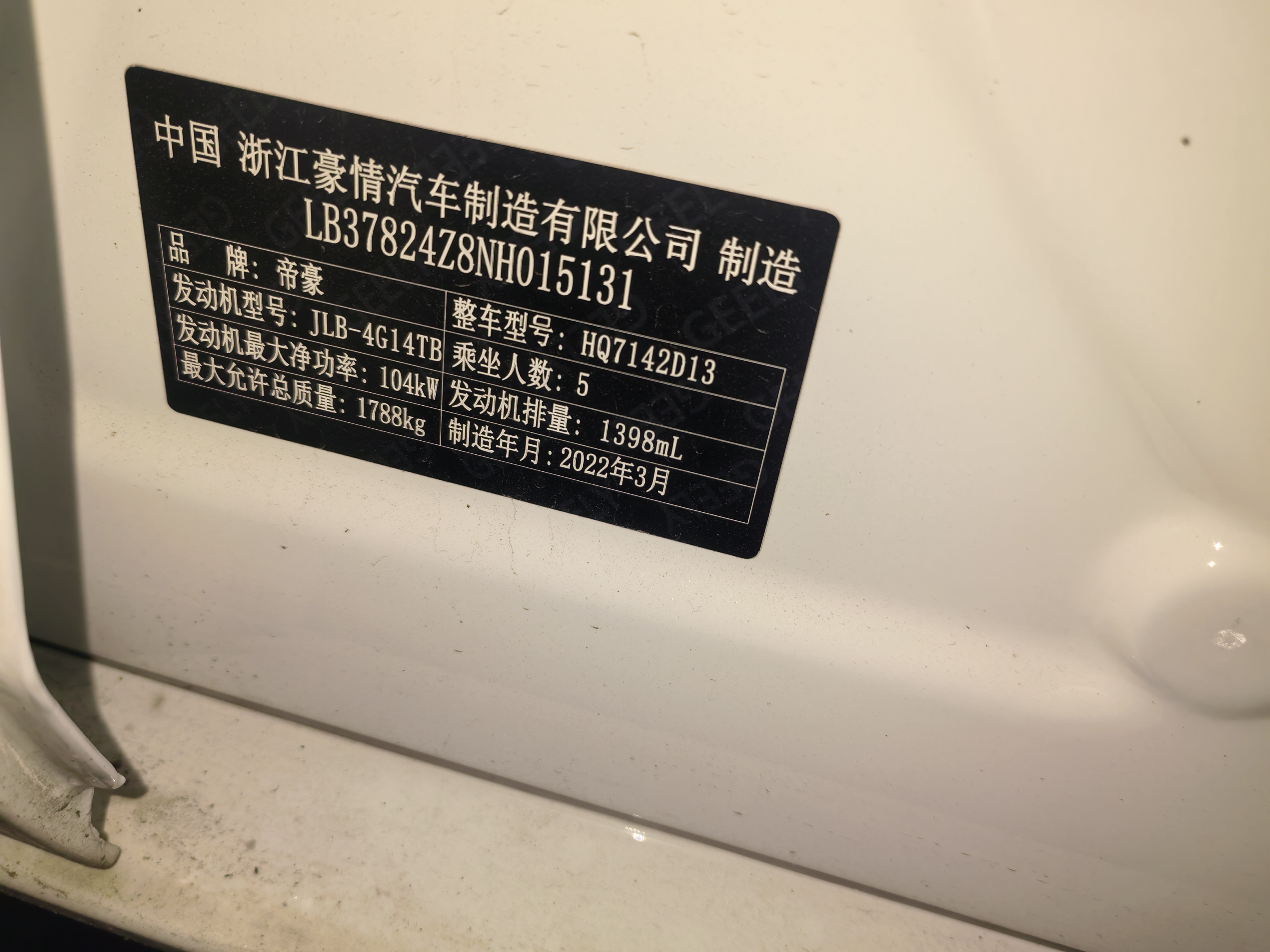 2021款 吉利 机盖