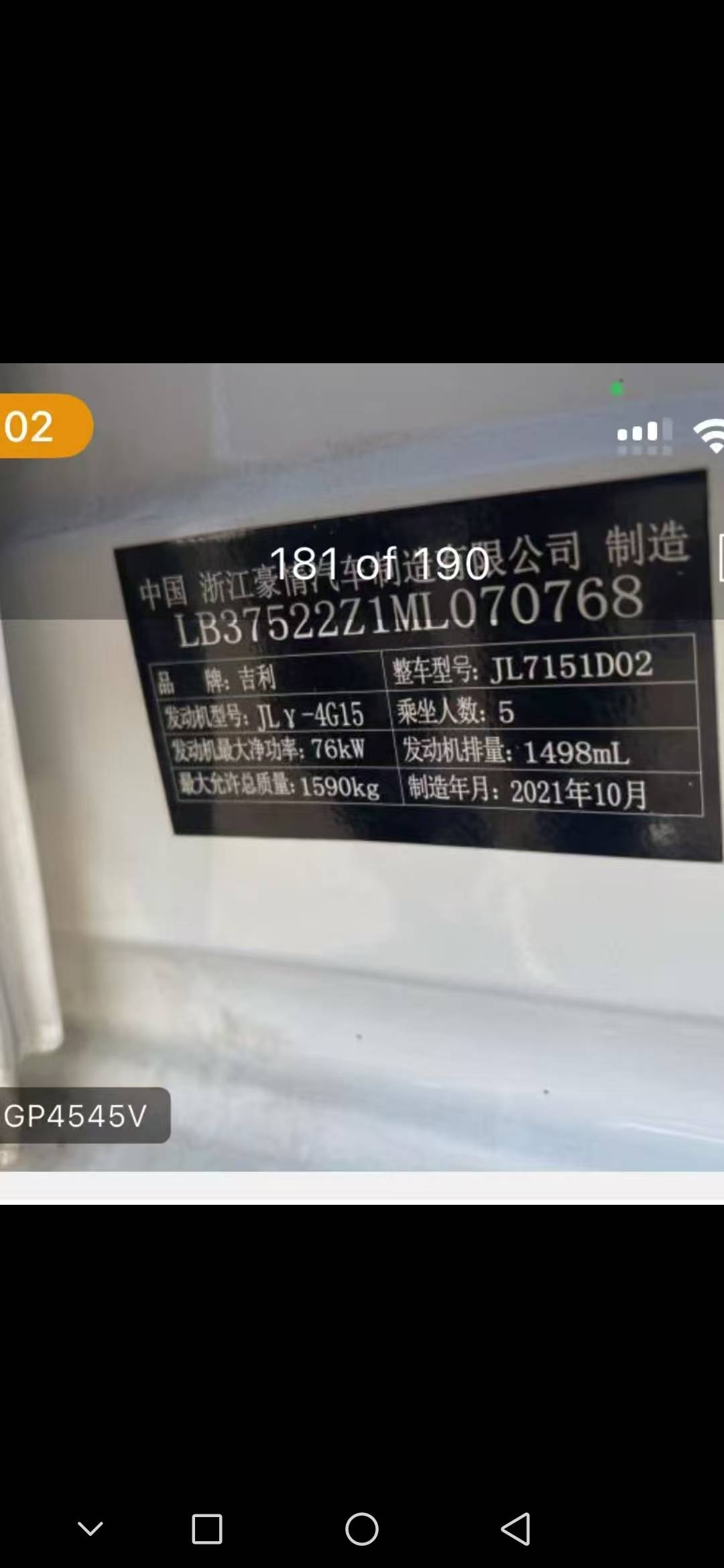 2021款 吉利 豪情 后幅总成