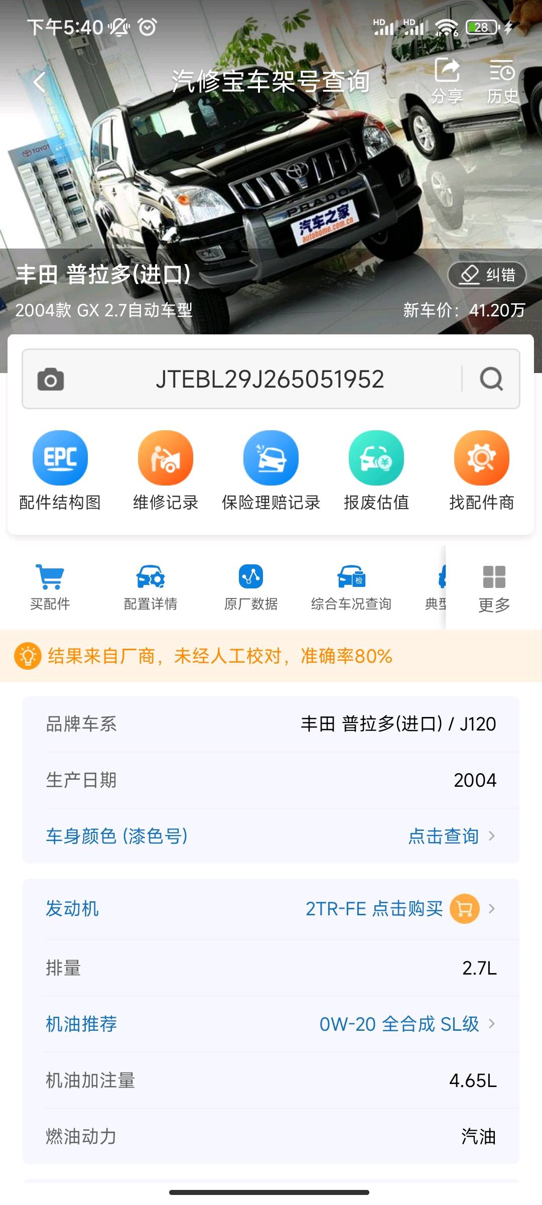 04普拉多j120车壳,大梁,前嘴机盖叶子板,左前悬挂一套